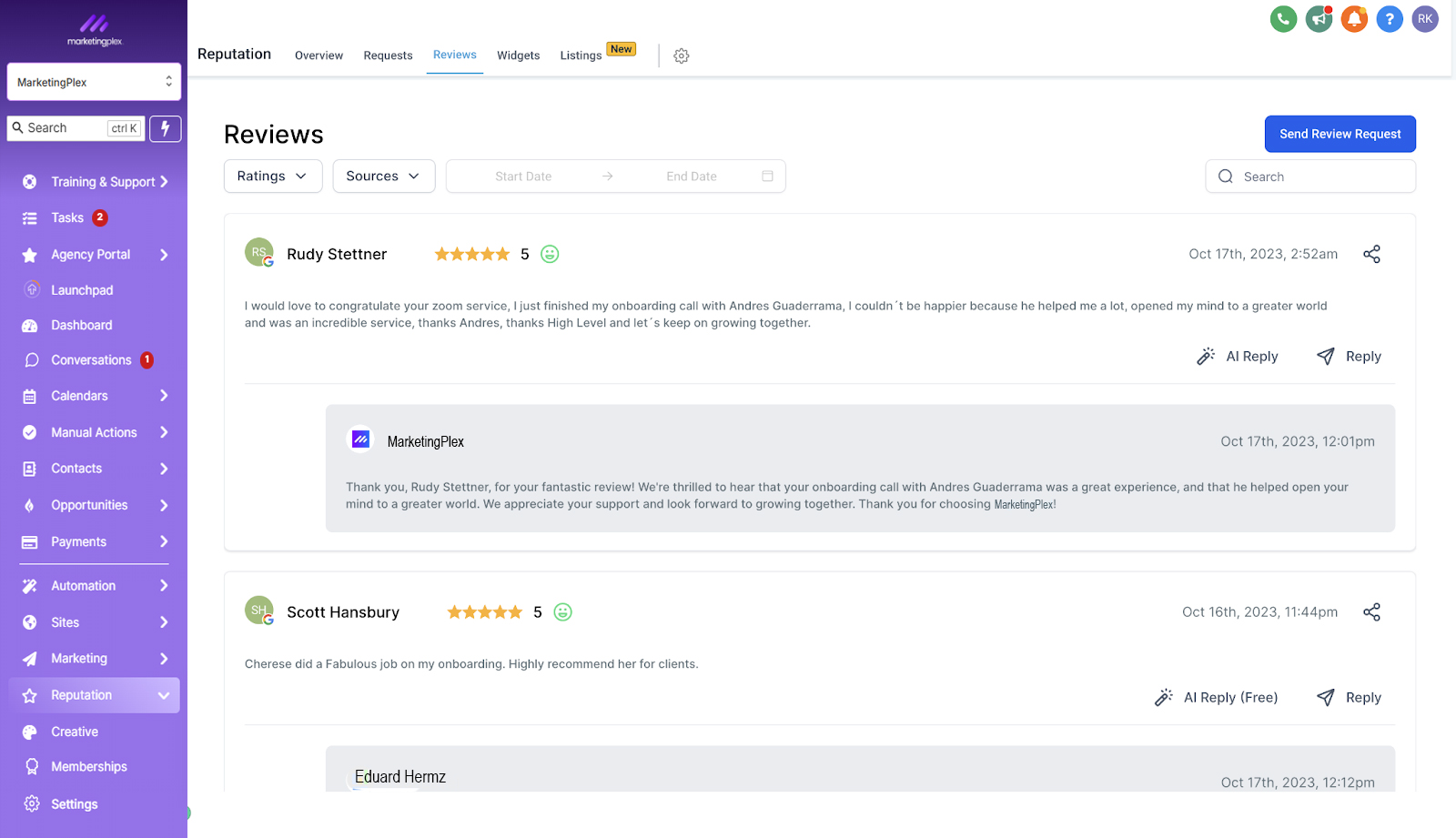 Within MarketingPlex we have several built-in tools to help you utilize AI to grow your business. Let’s review each of them below.