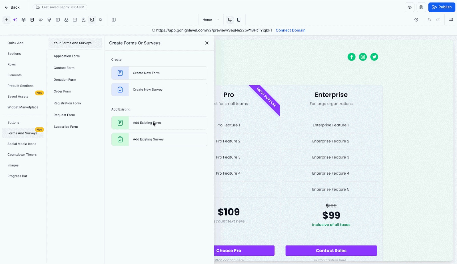 The Form Picker lets you reuse existing forms or surveys across multiple funnels and websites, keeping experiences consistent and measurable.