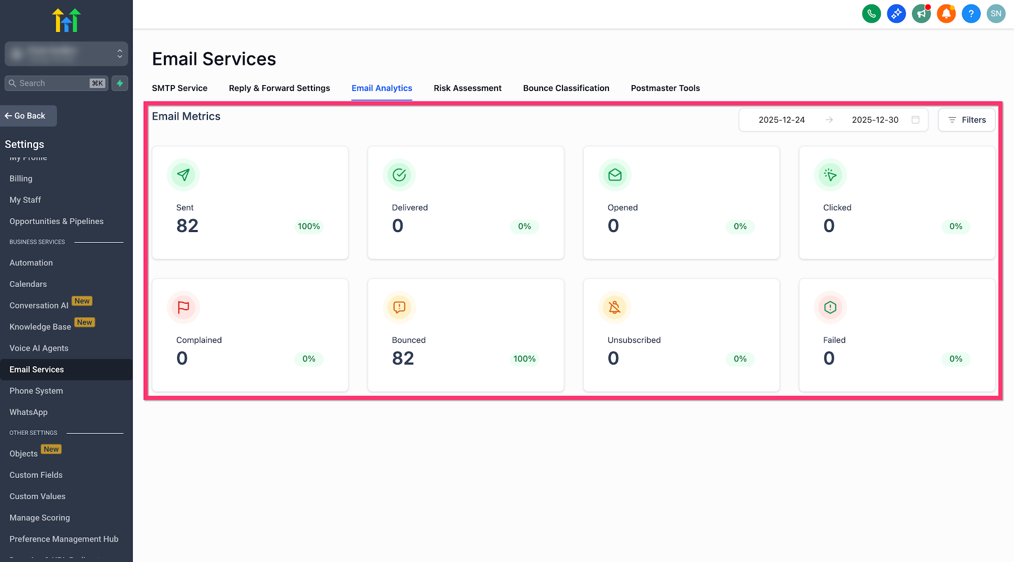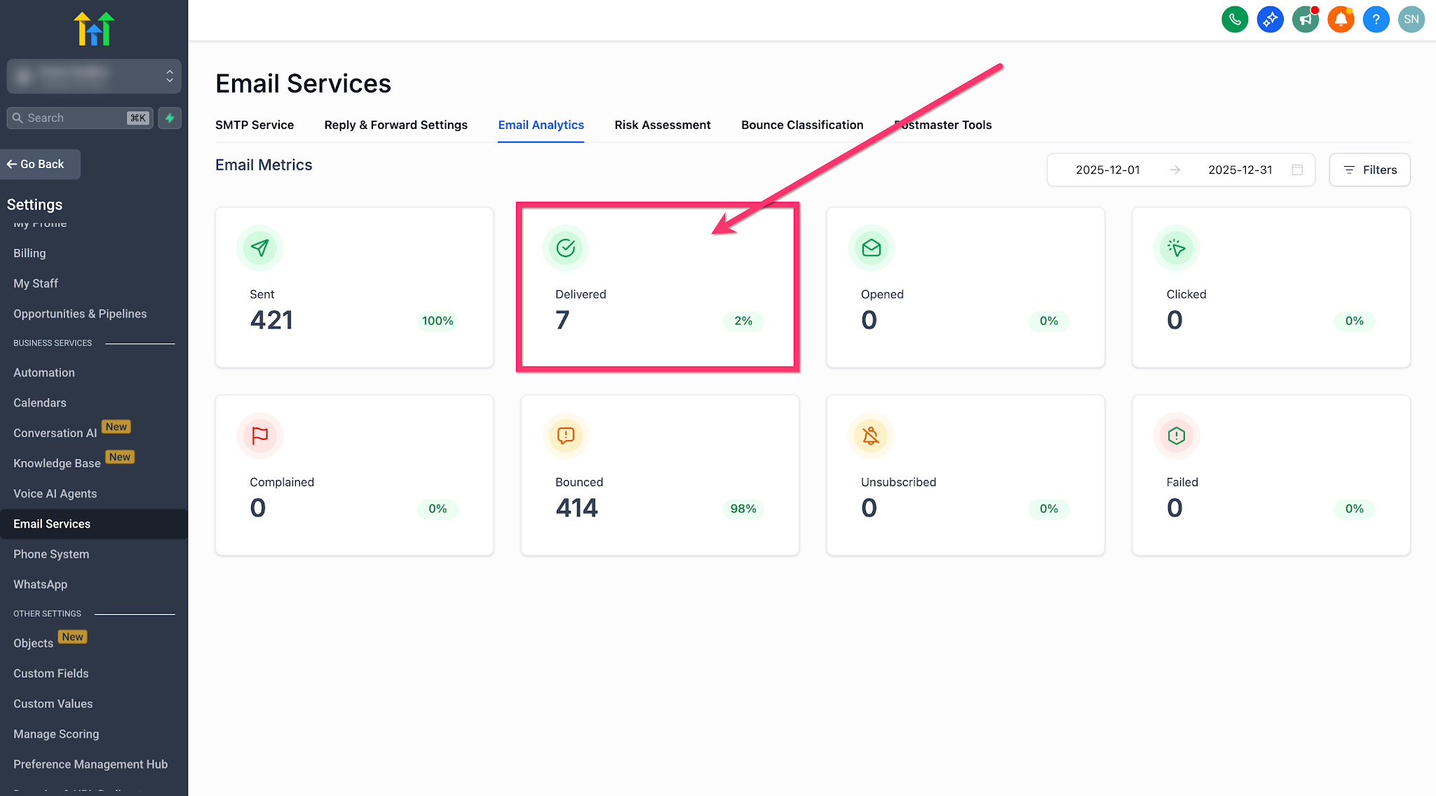 Go to Settings → Email Services → Email Analytics.