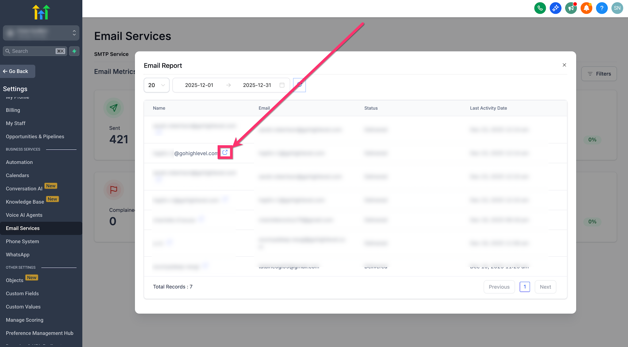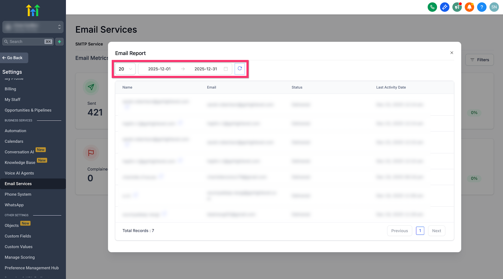 Note: Contact‑level Email Analytics filtering is available only for LC Email sub‑accounts.